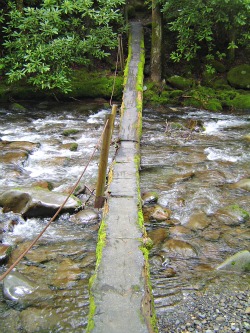 You'll reach the Smokemont Loop trail junction at the longest footbridge I've ever crossed in the Smokies. At the time, the bridge was out, but we were able to cross it because the water wasn't high. This is the part that made this hike an adventure for us!